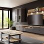 Enhance your space with the KIARA Display Cabinet in Grey and Oak. Modern design, perfect for small spaces, convenient silent closing, and durable high-quality furniture board.