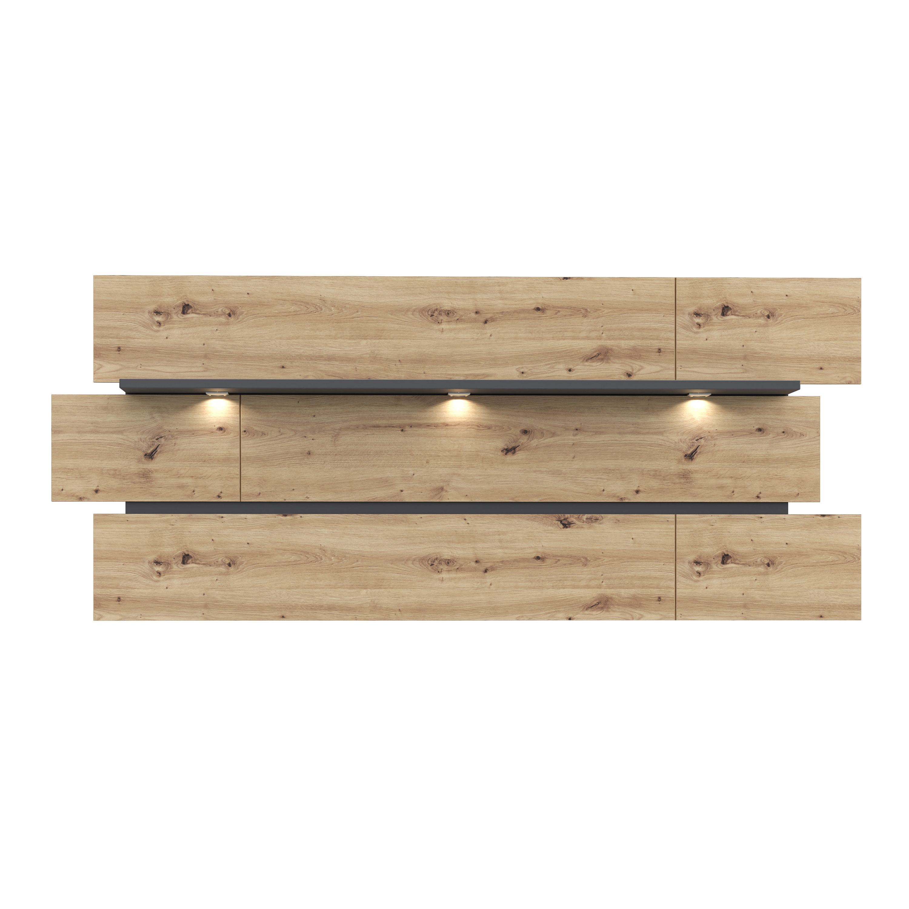 Enhance your space with the KIARA Wall Shelf. Modern design, Artisan Oak/Uni Wolfram Grey finish, durable ABS edging, and LED lighting included for added style.