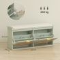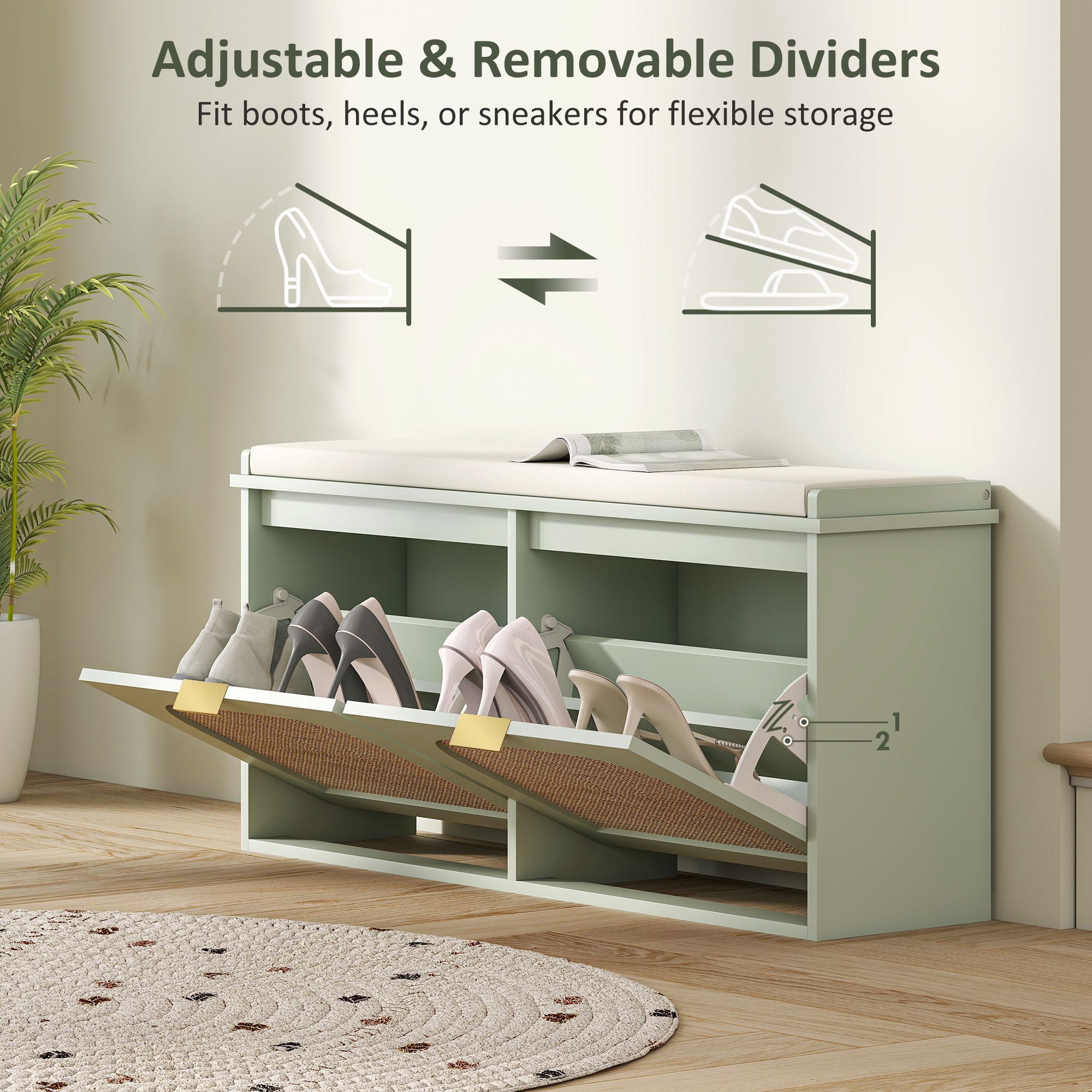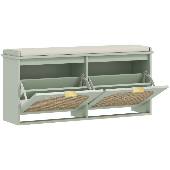KICKSY Rattan Shoe Bench Padded Seat 2 Flip Drawers - Light Green