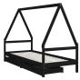 Kids Bed Frame with Drawers Black 80x200cm Solid Wood Pine