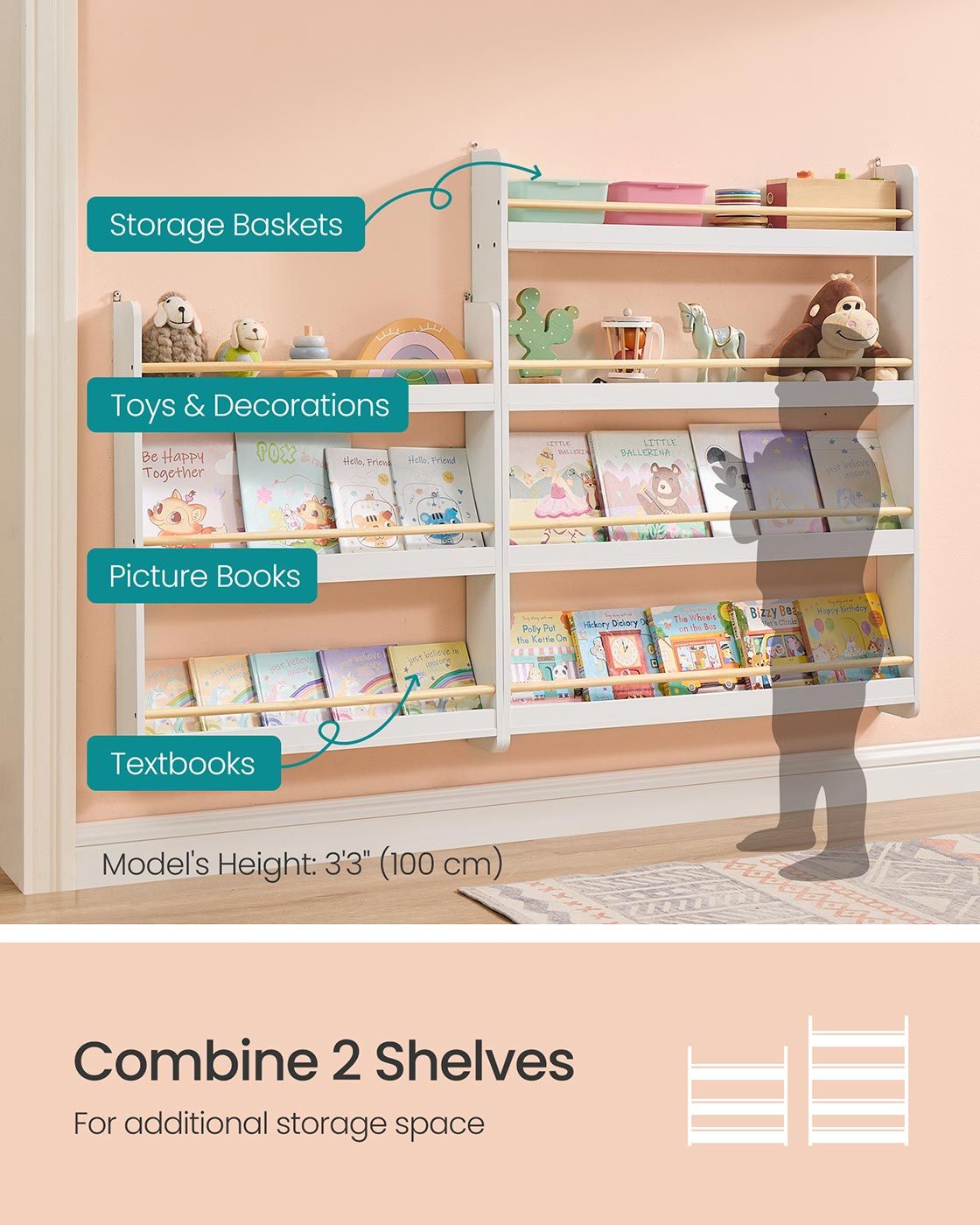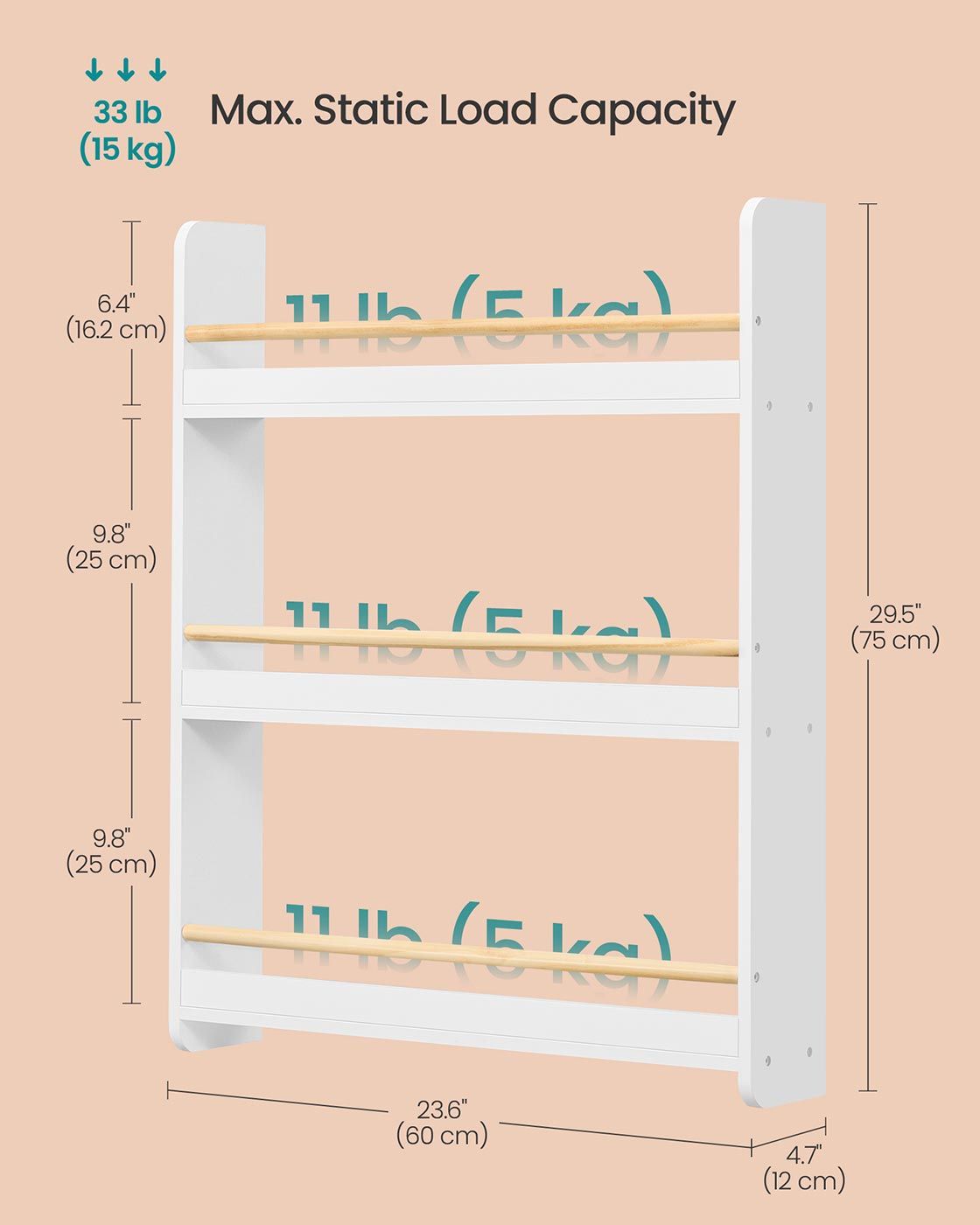 Kids Bookshelf - MODVA Wall Shelf 3 Tier Natural Wood and White - White