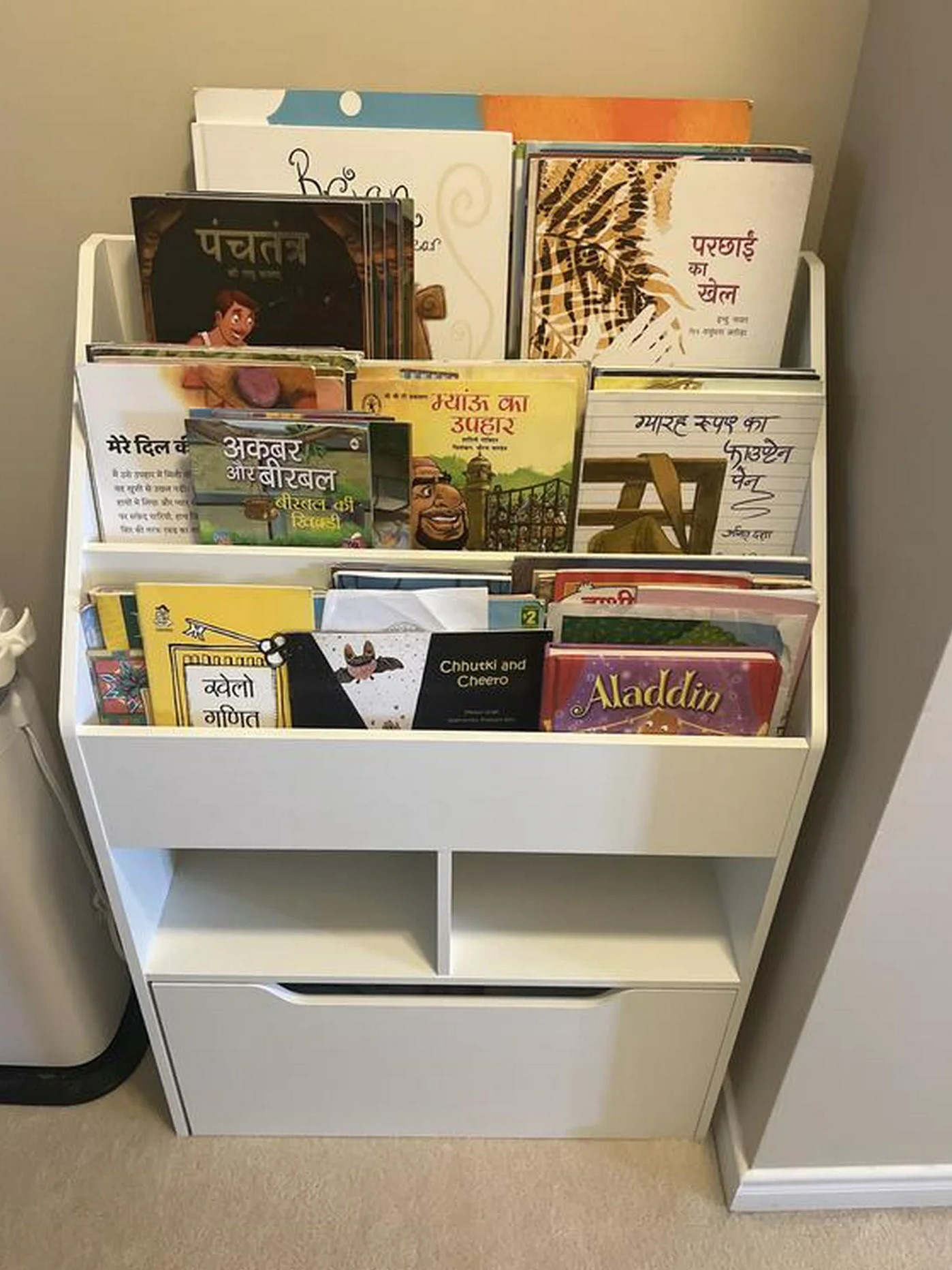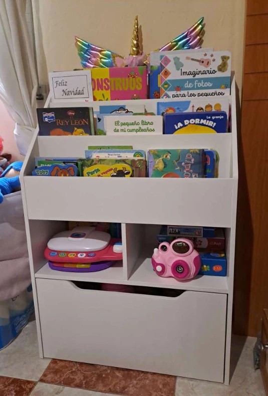 Kids Bookshelf, Toy Organiser, with Storage Drawer, Wheels, White