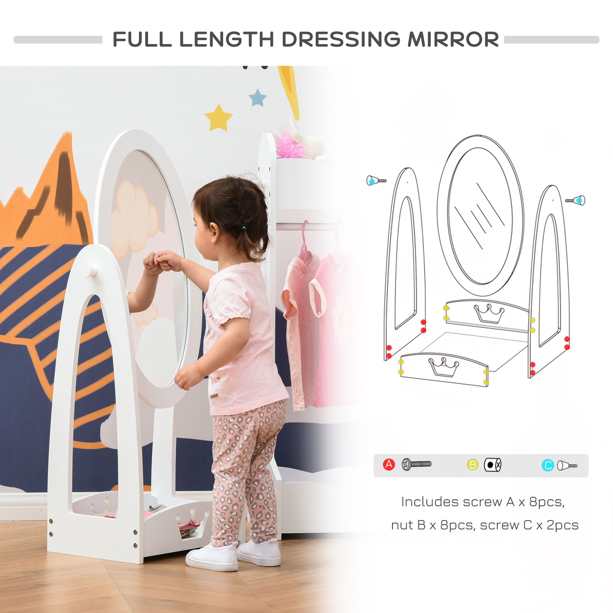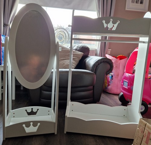 Kids Clothes Rail with 360 Rotating Full-Length Mirror - White