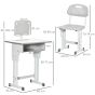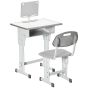 Kids Desk and Chair Set, Height Adjustable Study Table Set with Storage Drawer, Book Stand, Cup Holder, Pen Slot, Grey
