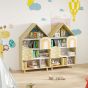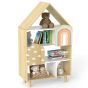 Kids Dollhouse Bookshelf with 2 Doors for Playroom Bedroom-Natural