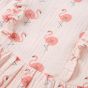 Our children's clothing line is all about affordable, high-quality, and durable everyday wear for kids aged 1.5 to 10. Our range includes jackets, sweaters, shirts, and many more, with a variety in style, size, and colour. Following the high-quality standard in the market, we are using high-grade materials and advanced manufacturing techniques. This kids' dress has a round neckline and closes with buttons at the back. This soft pink children's dress features lovely ruffles that run from the front along the sleeve insert. This dress is printed with flamingos all over. The kids' short dress is made from soft material that includes 100% cotton for comfort and breathability. Good to know: This size chart in the picture provides measurements for kids aged 1.5 to 10, covering the height, chest, waist, and hip. You can easily find the right fit for your child.
