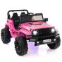 Made of durable and safe PP and metal, the 2-seater ride-on truck will accompany kids for years. Moreover, the wide seat with safety belt holds up to 2 kids at the same time. When they are younger, you can control the electric vehicle by remote control. As they grow older, they are able to manually control the car. The steering wheel and foot pedal enable little ones to have a real driving experience. And the rotatable rearview mirrors as well as the big wheels mimic a real car. With built-in music, radio and USB port, the 24V battery-powered truck entertains kids while driving. Furthermore, the bright LED lights and extra LED light strips bring more fun for playing.