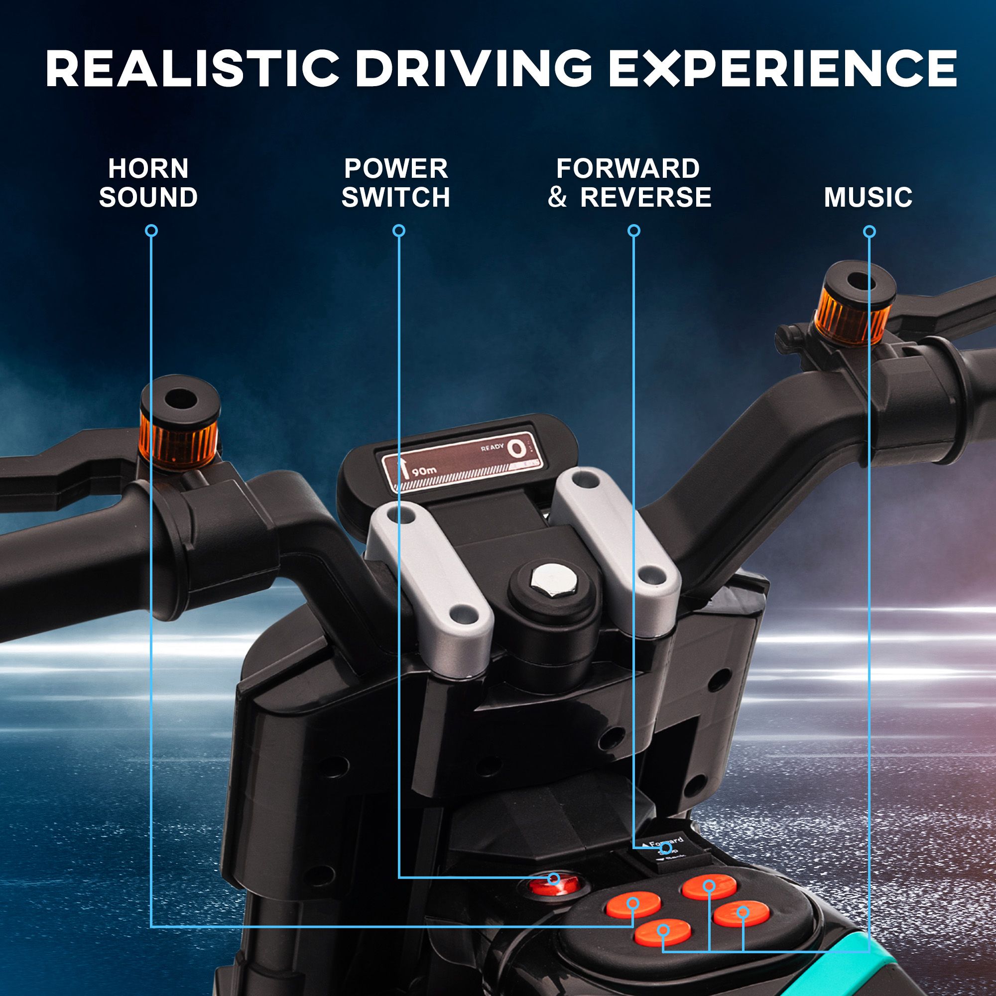 - Realistic features: This kids electric motorbike includes a working horn, siren and music, whilst the headlights keep them safe and visible.