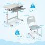 Kids Furniture - Height Adjustable Kids Study Table and Chair Set with Tilting Tabletop-Grey