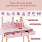 Kids Furniture - Kids Vanity Table and Stool Set with Square Mirror and Storage Shelf-Pink