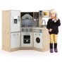 Kids Kitchen Toy - Kids Corner Wooden Kitchen Playset with Cookware Accessories
