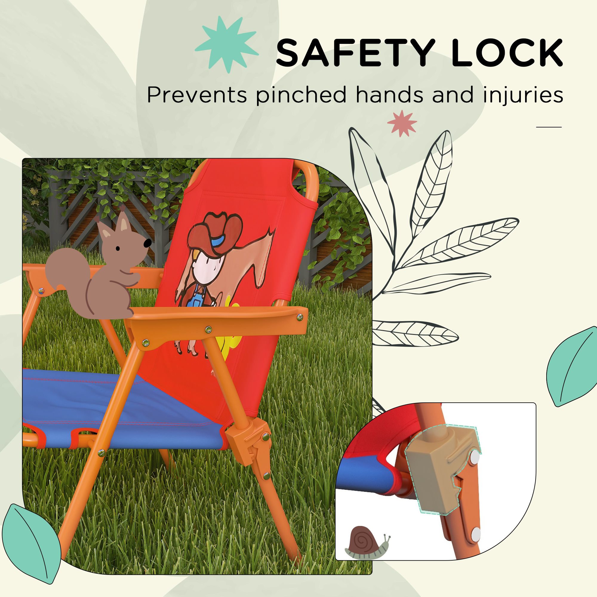 Kids Picnic Table and Chair Set Cowboy Themed Outdoor Garden Furniture w/ Foldable Chairs, Adjustable Parasol