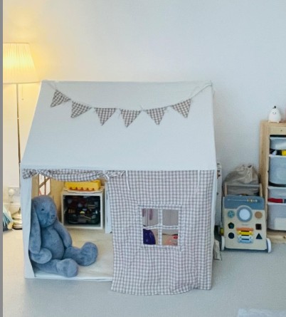 Kids Play Tent with Padded Mat for Children Aged 3-8 Years Old-Beige
