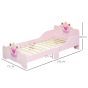 Kids Single Wooden Bed Princess Crown & Flower with Safety Rails - Pink