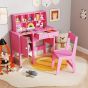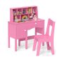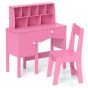 Kids Study Desk and Chair Set with Hutch and Storage Cabinet-Pink