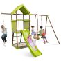 Kids Swing Set - 7-in-1 Swing Set Outdoor Metal Playset with Covered Fort-Green