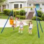 Kids Swing Set - Heavy-Duty Kids Playset with 2 Swing Seats and 2 Glider Seats for Children 3-12 Years Old-Blue