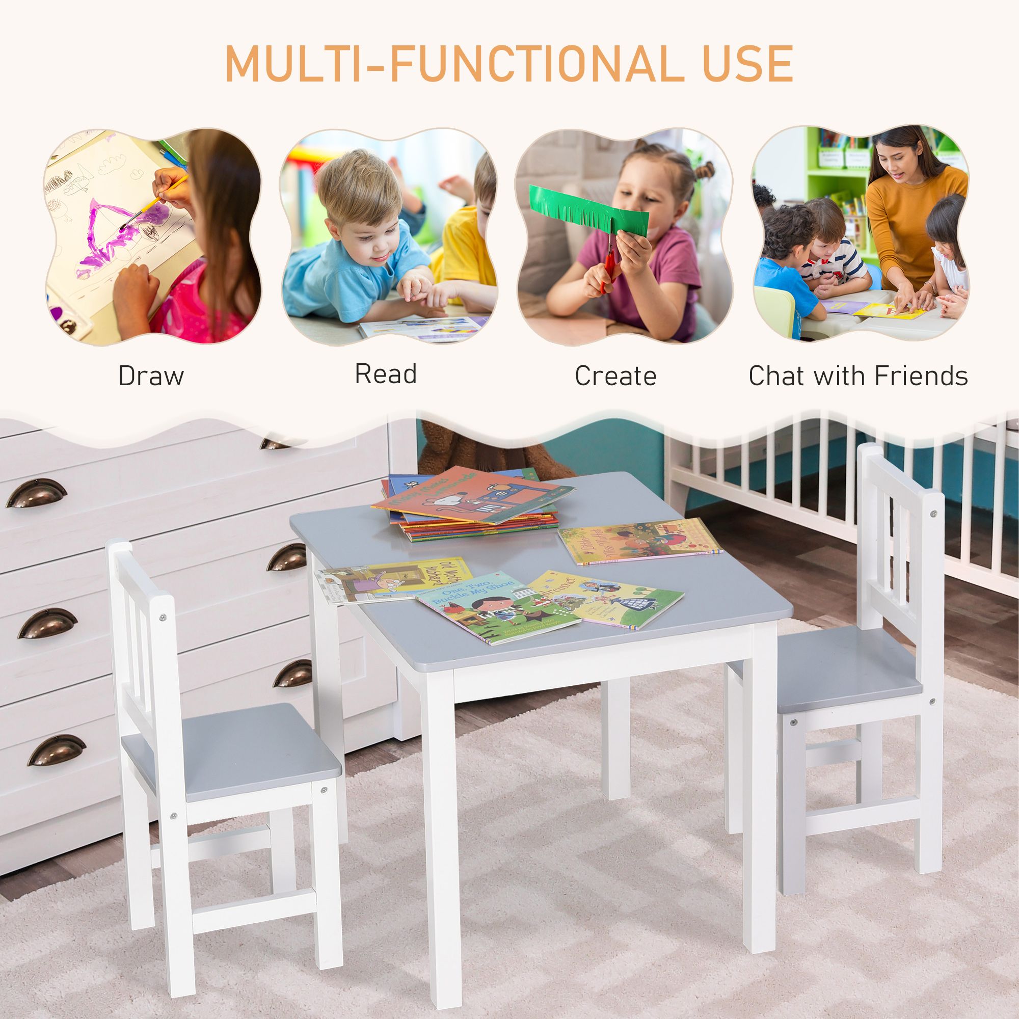 Kids Table and 2 Chairs Set 3 Pieces Toddler Multi-usage Desk for Indoor Arts & Crafts Study Rest Snack Time Easy Assembly Grey