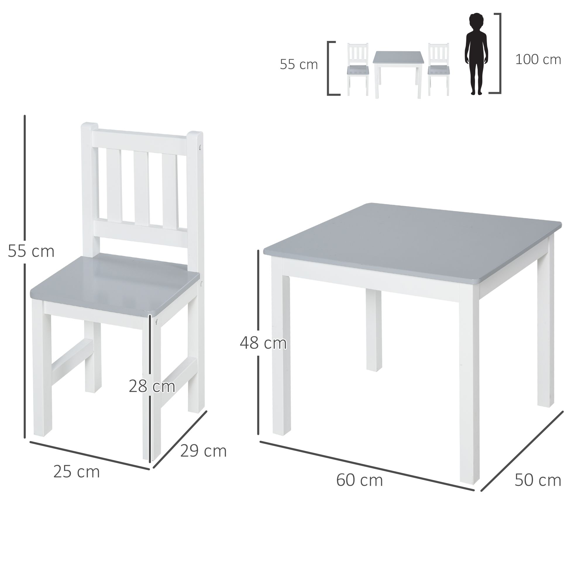 - KIDS TABLE AND CHAIR SET: This 3-piece set includes a table and 2 matching high-back chairs. Intended for two kids aged at least 3 years and up, supporting up to 25 kg of weight.