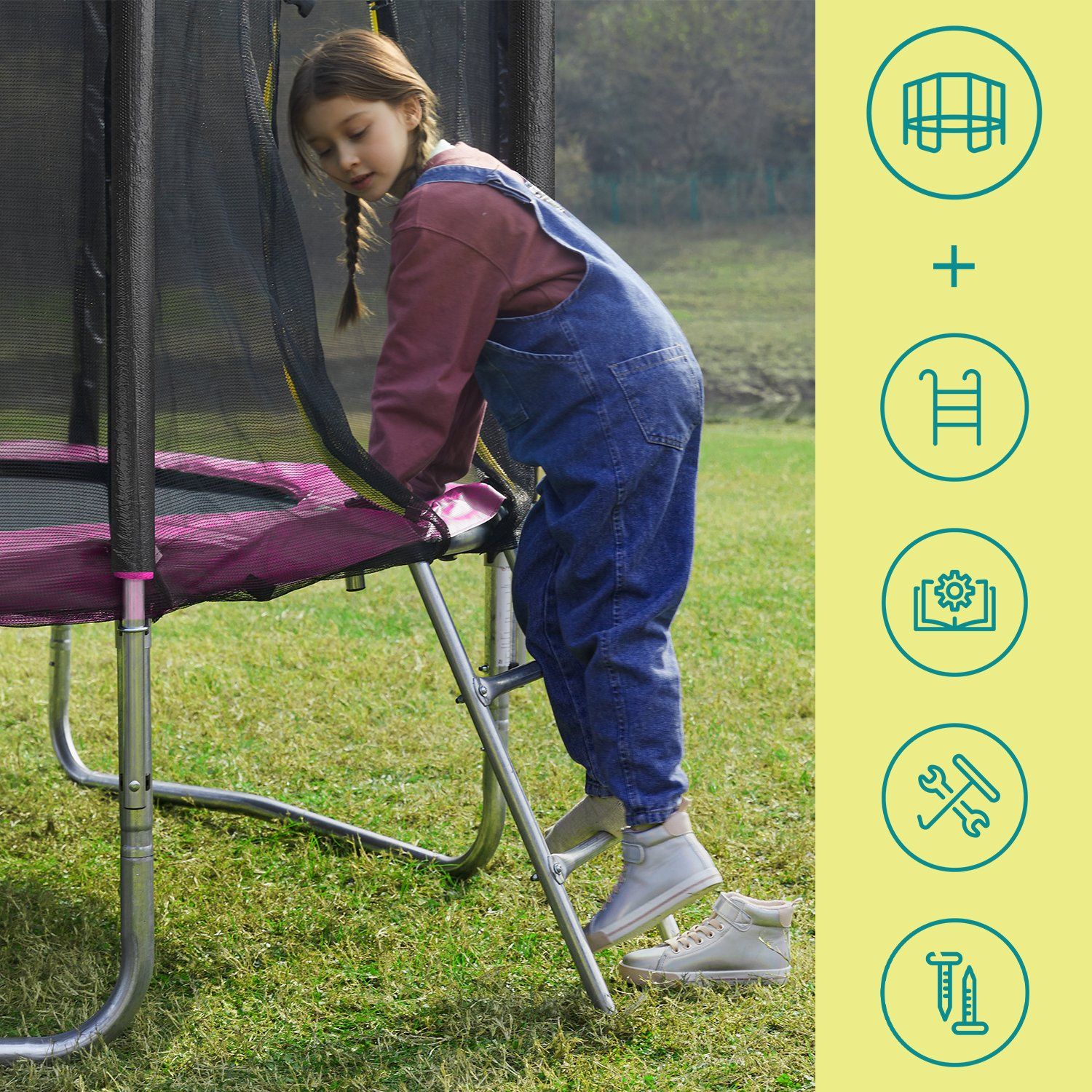 Kids Trampoline - LUSNOS 6 ft with Enclosure Net and Safety Pad - Pink