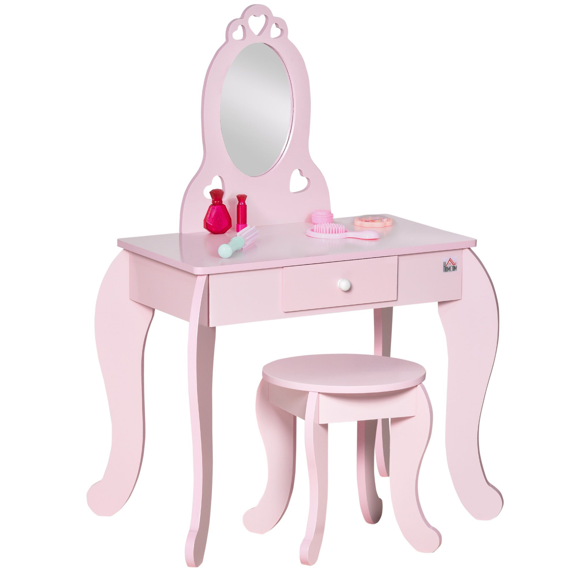Kids Vanity Table & Stool Girls Dressing Set Make Up Desk Chair Dresser Play Set with Mirror Pink