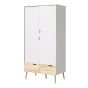 Kids Wardrobe - OSSETT 2 Door 2 Drawer Children Wardrobe White and Oak 98.6cm
