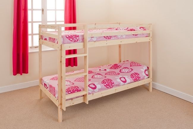 Kids Wooden Bunk Bed 2ft6 Shorty With 2 Mattresses - White or Natural Pine