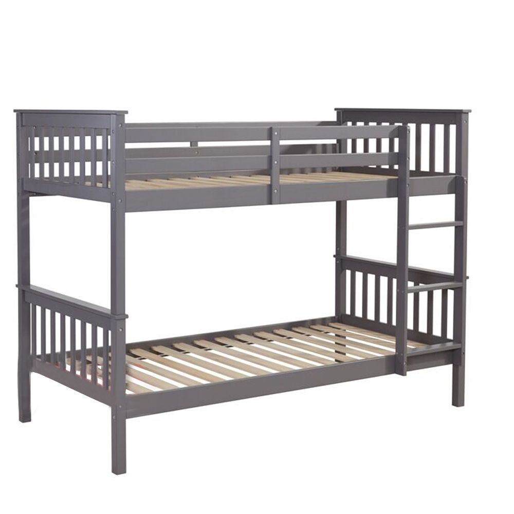 This is a beautiful grey, white or natural pine wood kids bunk bed frame and mattress/mattresses, if selected. The pine wood used offers an attractive finish and feel to the frame, the great quality of the real wood materials used in this will also provide the security and reassurance essential when looking for a long term bed for a child’s room.