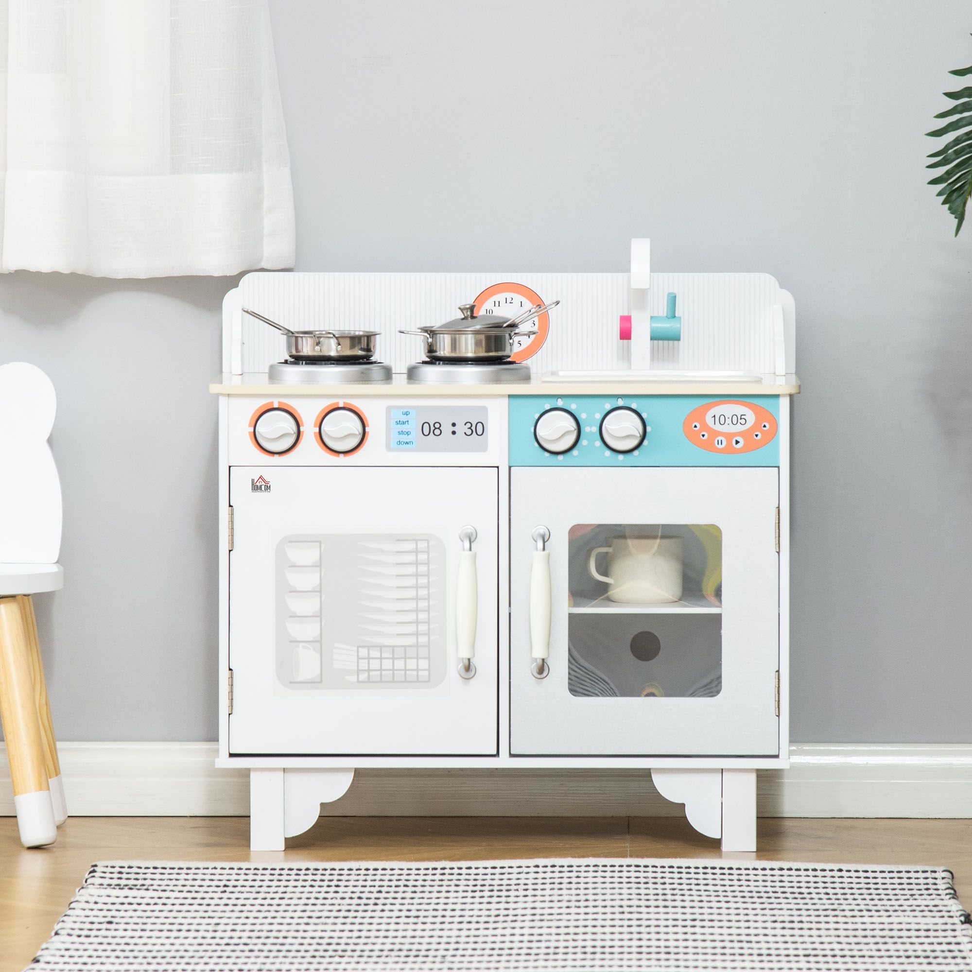 Kids Wooden Pretend Play Toy Kitchen Cooking Set with Sink - White