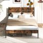 Kingsize Bed - NOVARA Metal Bedframe with Wooden Headboard and Footboard - Brown