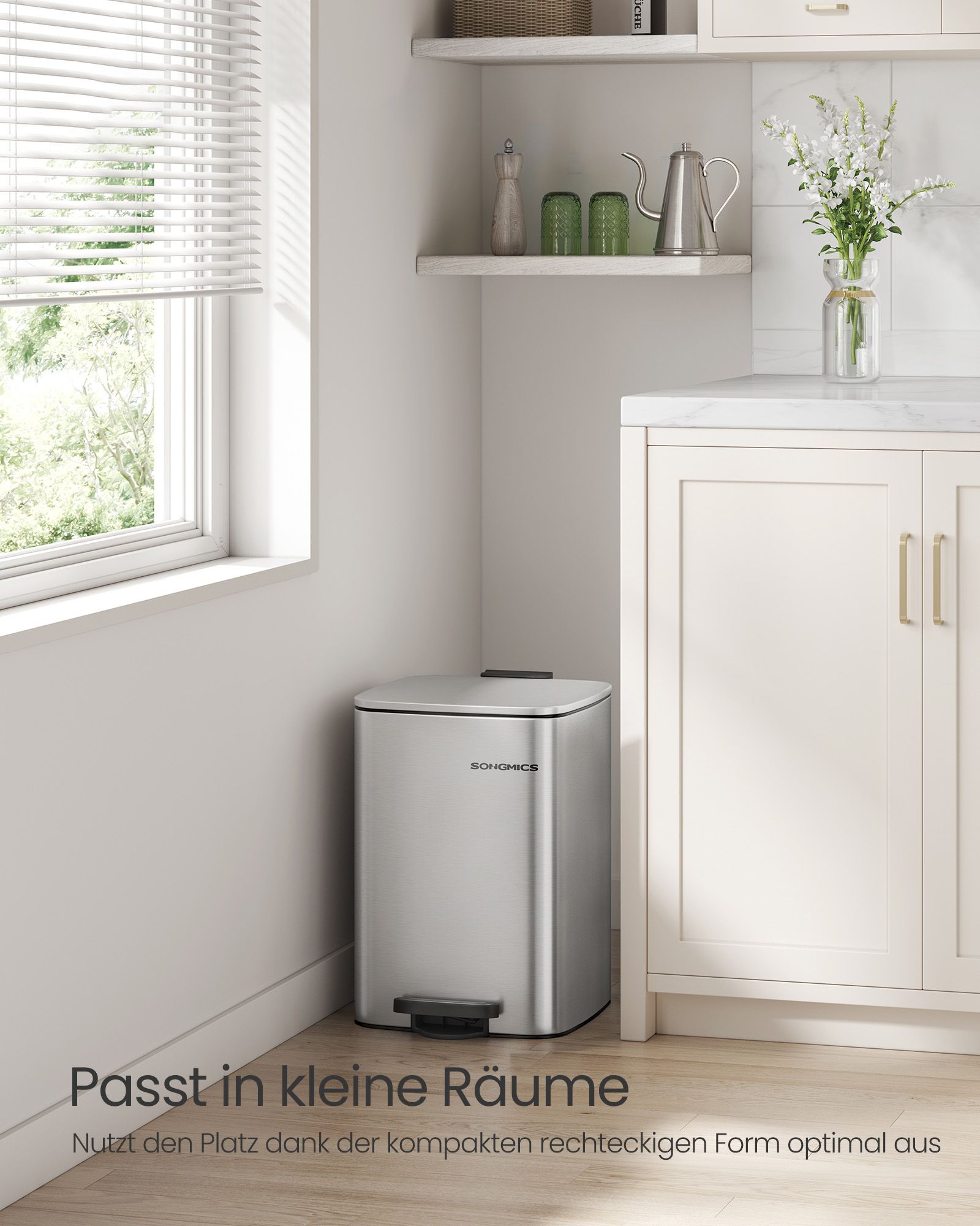 Kitchen Bin - MODRA 20L Steel Bin with Inner Bucket - Metallic Silver