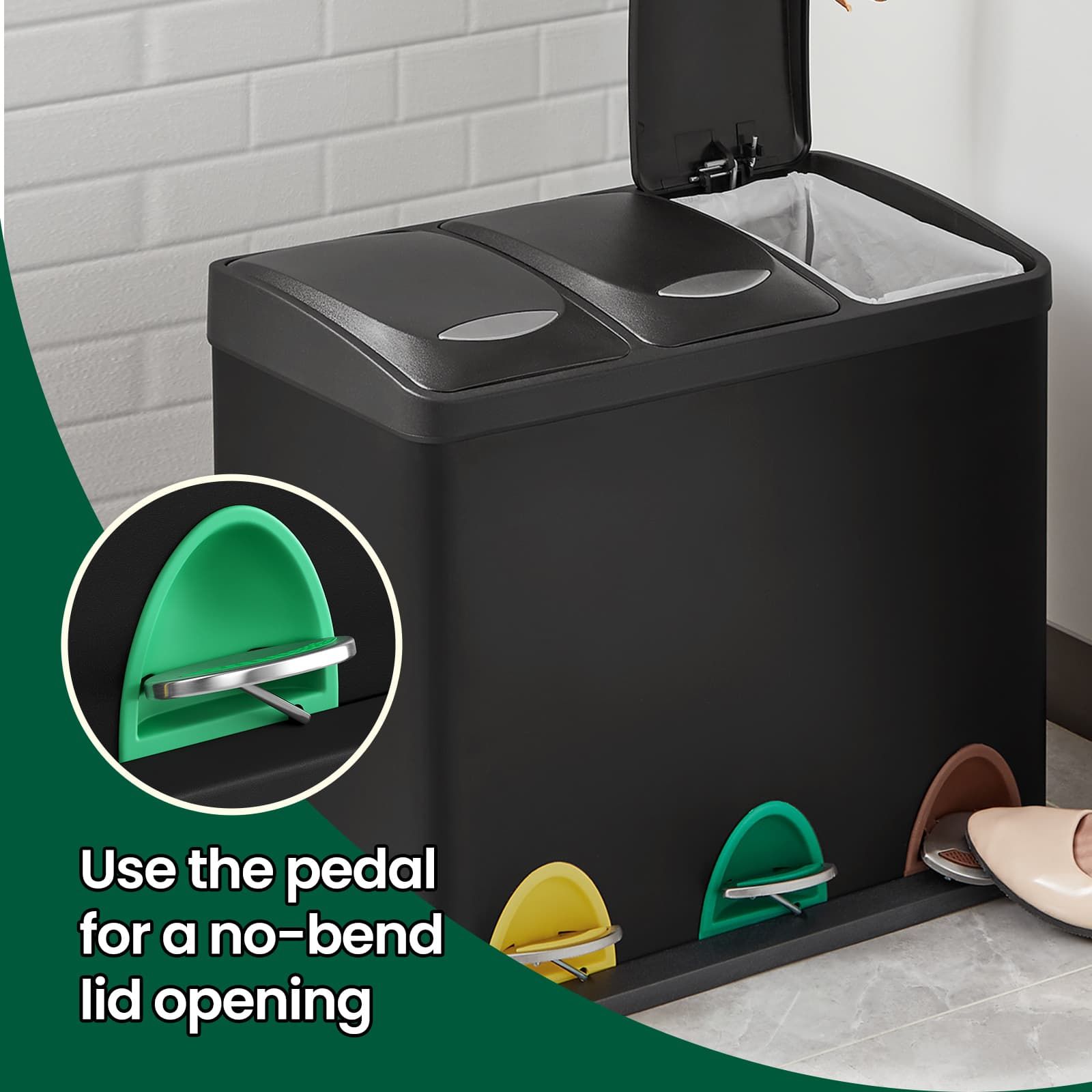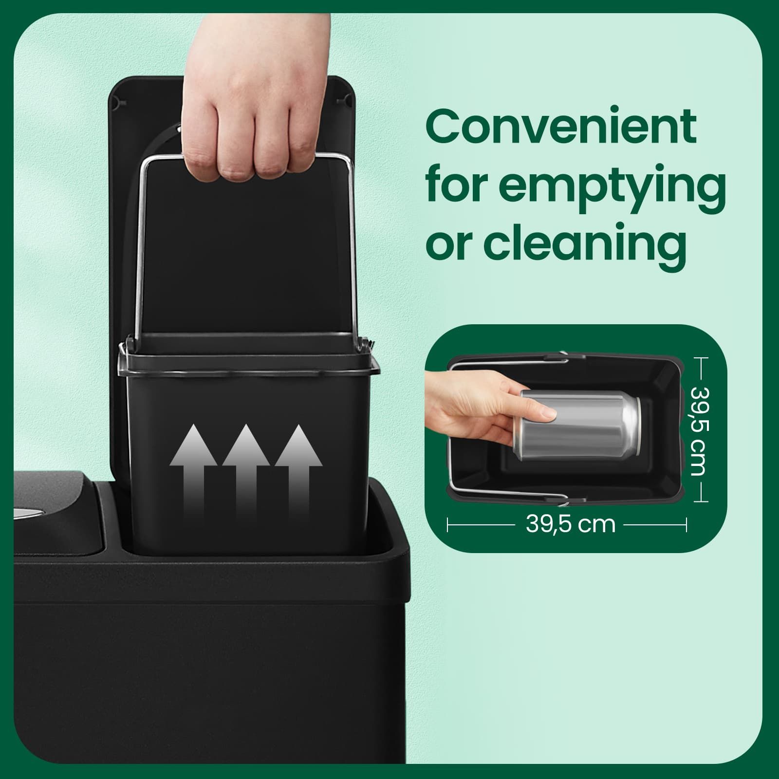 Kitchen Bin - VERRA 3 x 8L Metal Pedal Trash Bin with Lids and Bucket - Black