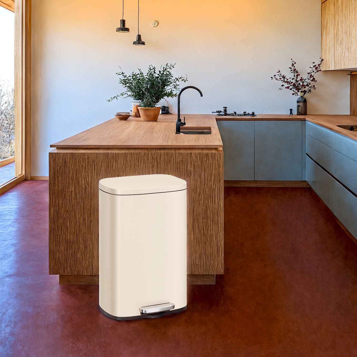 Kitchen Bin - VERRA 50L Stainless Steel Trash Bin - Sand Beige
