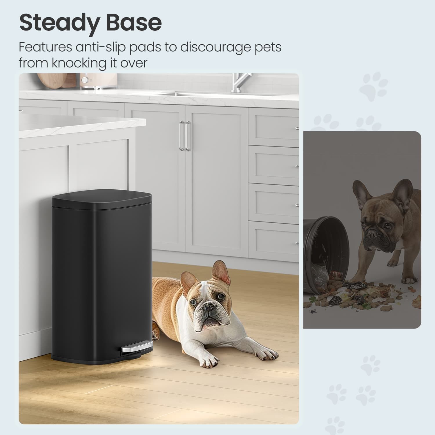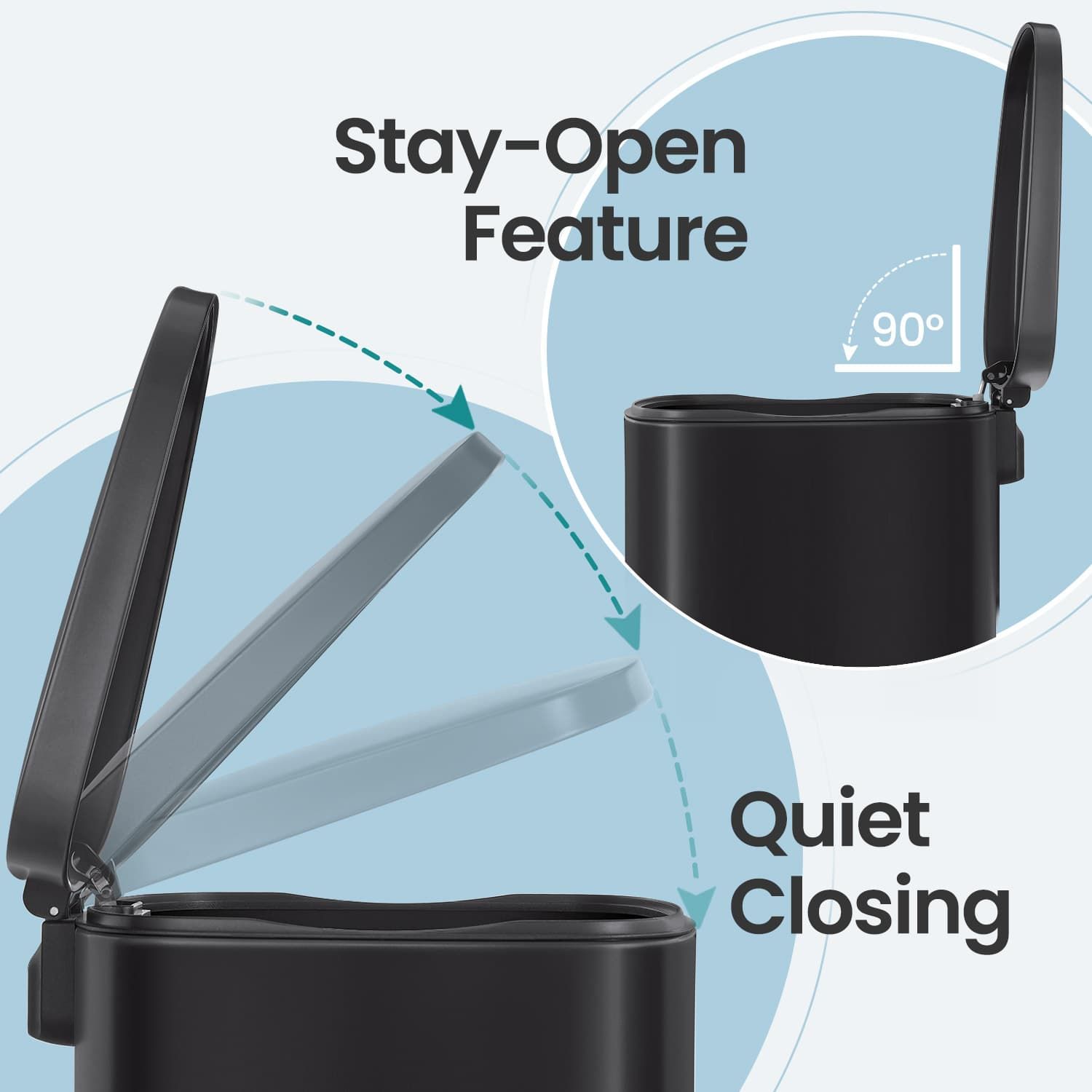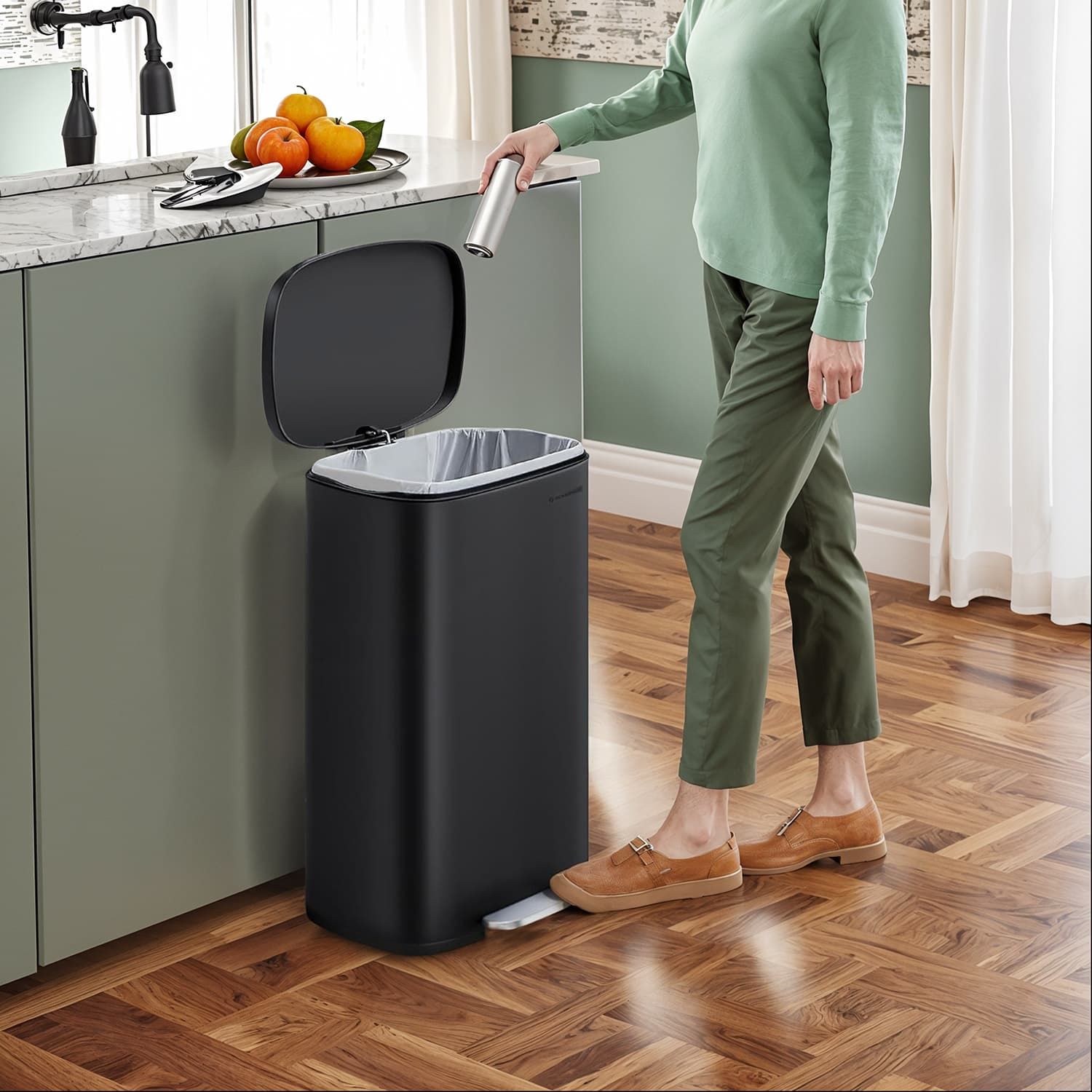 Kitchen Bin - VERRA 50L Stainless Steel Trash Bin with Foot Pedal - Black