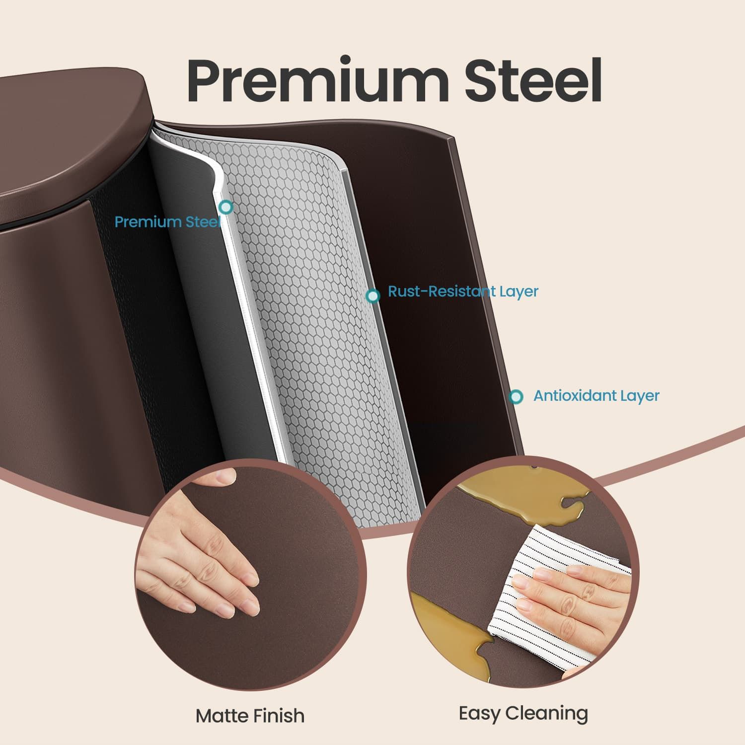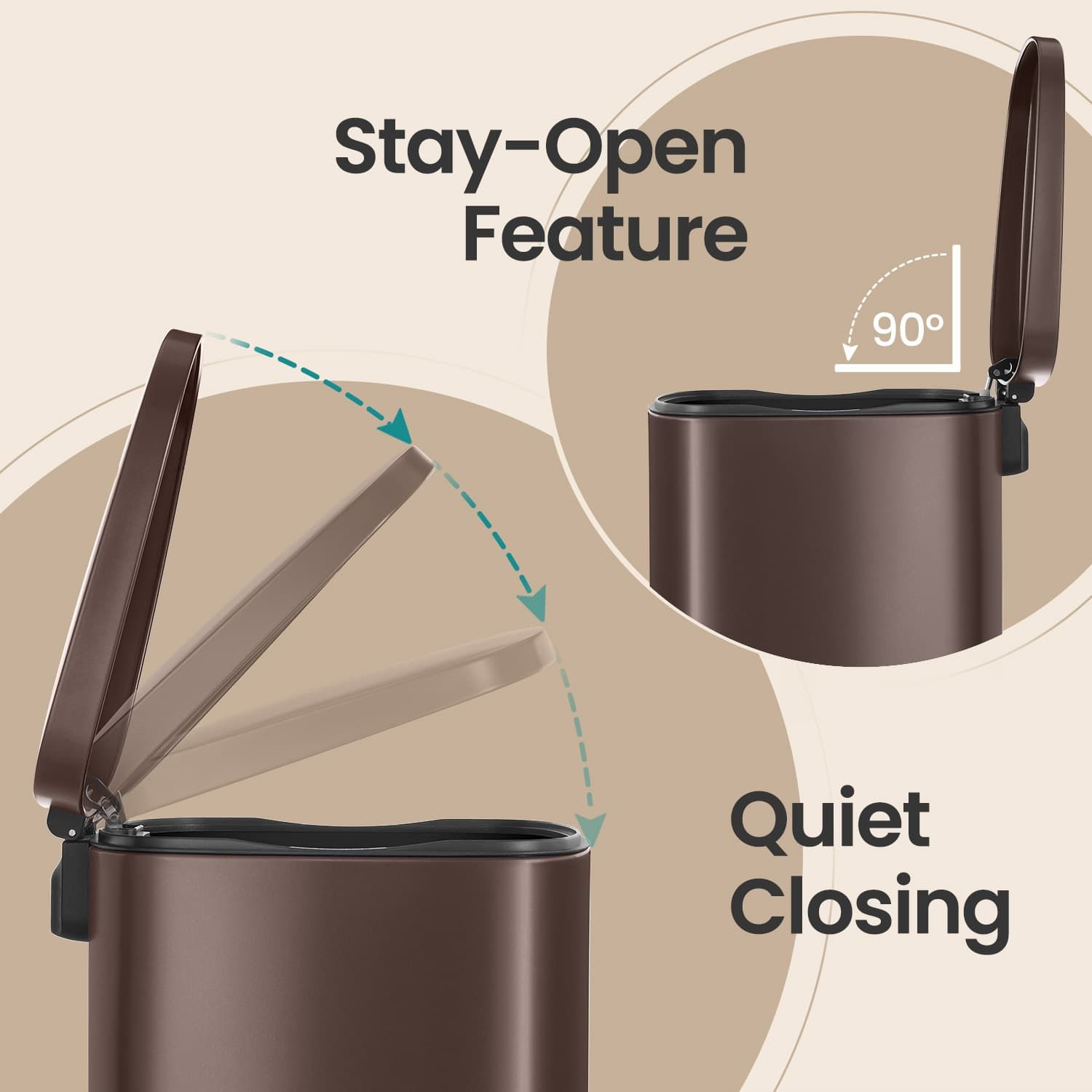 Kitchen Bin - VERRA 50L Stainless Steel Trash Bin with Foot Pedal - Brown