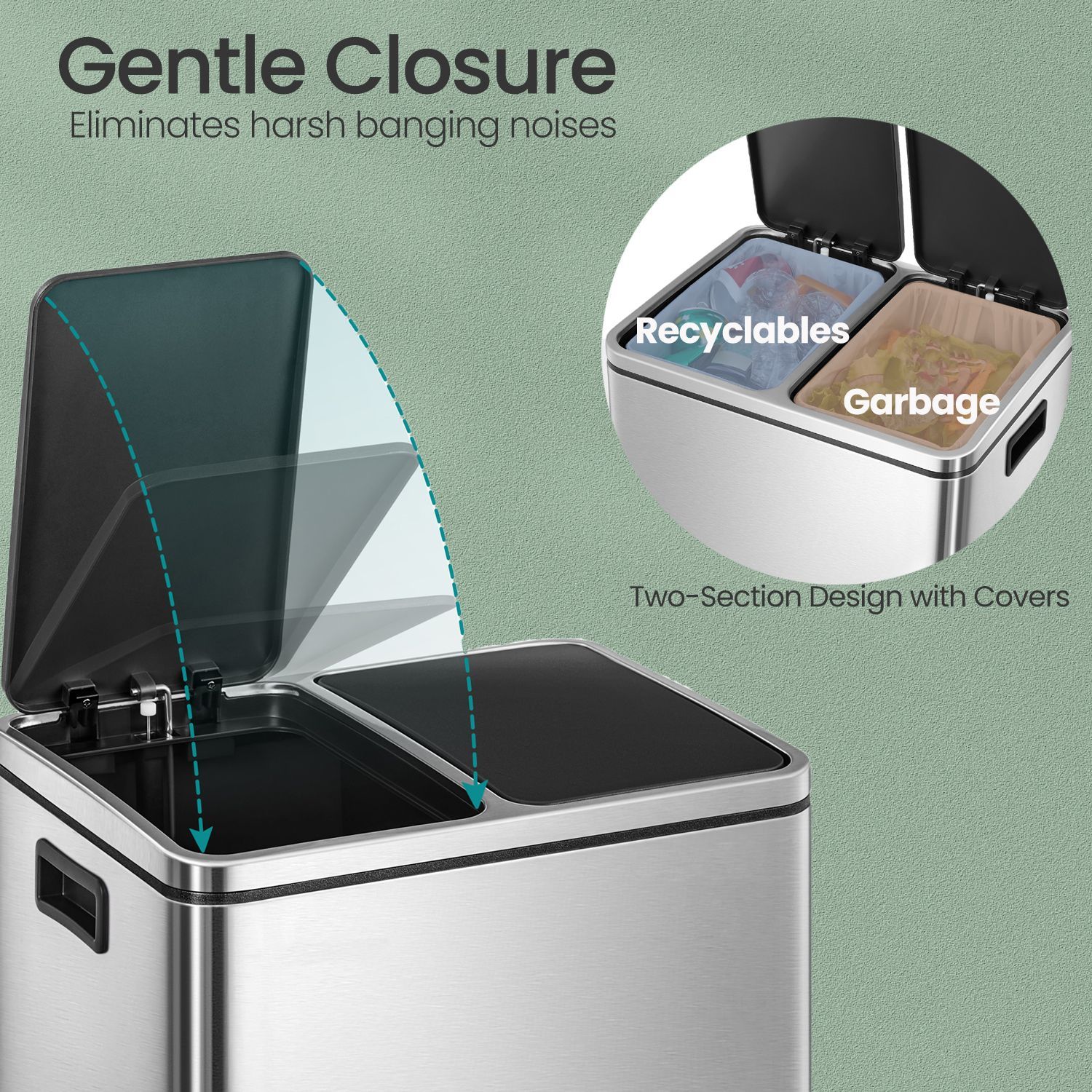 Kitchen Bin - VERRA Double 2 x 15L Pedal Rubbish Bin with Inner Bucket - Grey