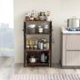Kitchen Cabinet - 3-Tier Kitchen Bakers Rack with Cabinet Open Shelves and 10 Removable S-Shaped Hooks-Brown