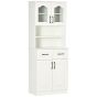 Kitchen Cupboard, Freestanding Storage Cabinet with 2 Adjustable Shelves, 2 Drawers and Open Counter for Living Room, Dining Room, 168cm, White