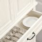 Create more storage space while adding style with this kitchen larder cupboard. Featuring a wood grain veneer, raised door panels, and antiqued metal hardware, this kitchen cupboard has charm and elegance. Equipped with two cabinets and a drawer, this pantry cupboard gives you space to place your plates or utensils. With its compact design and excellent storage capabilities, this larder unit will become your new favourite piece of furniture.