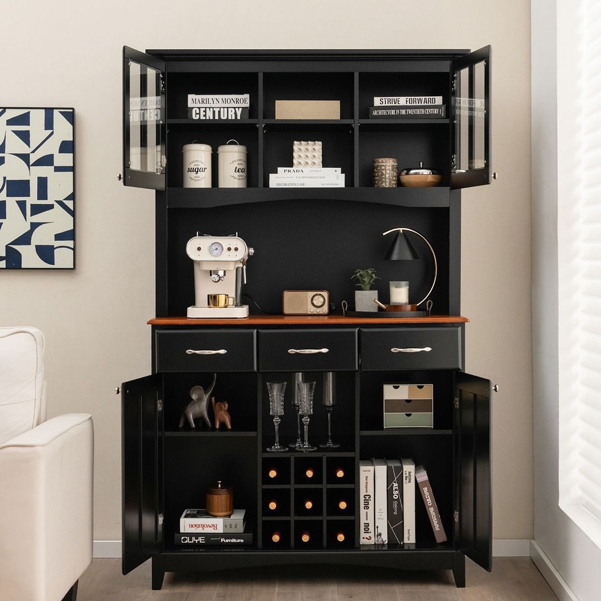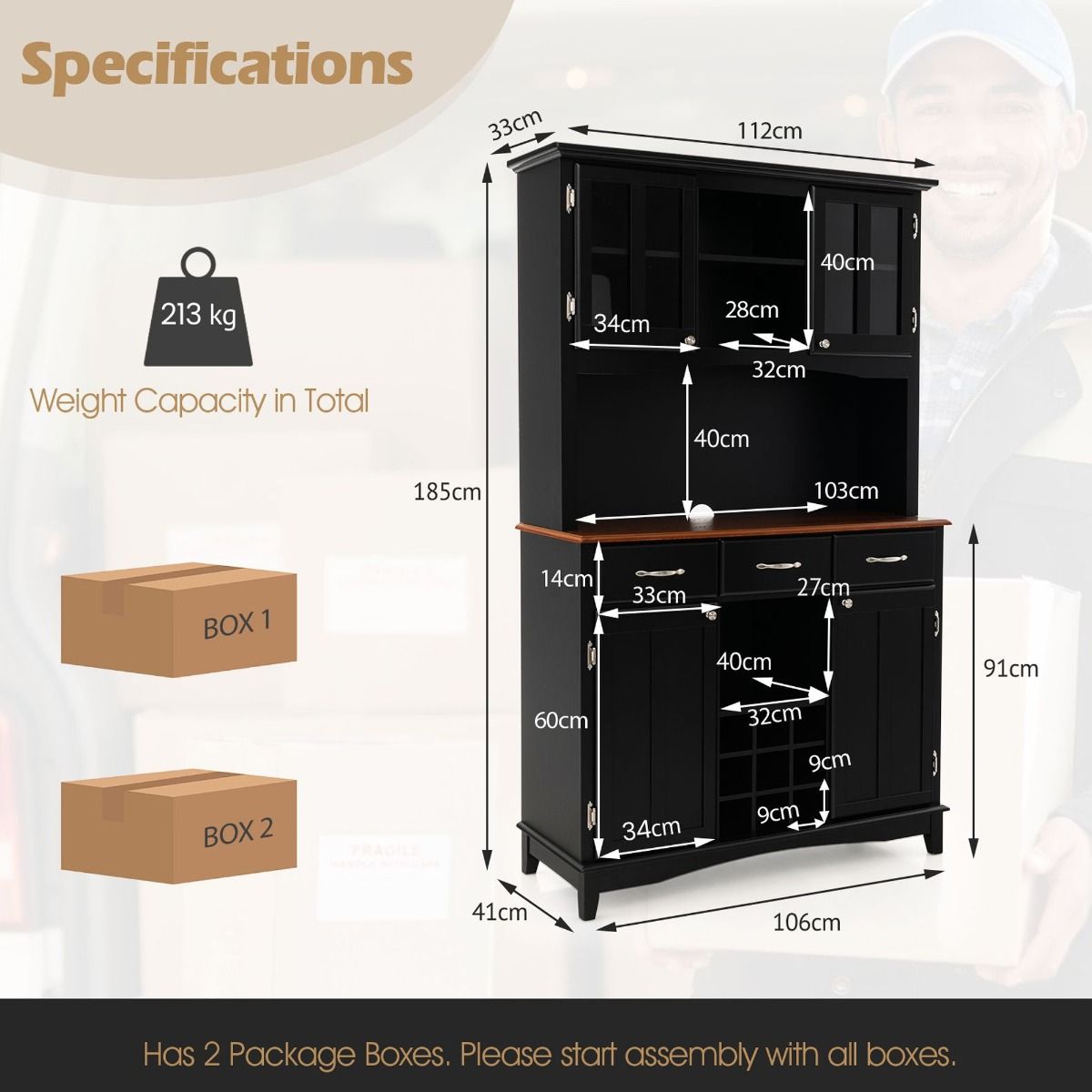 Kitchen Cupboard with Adjustable Shelves and Drawers - Black