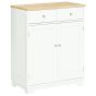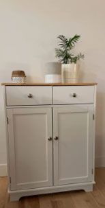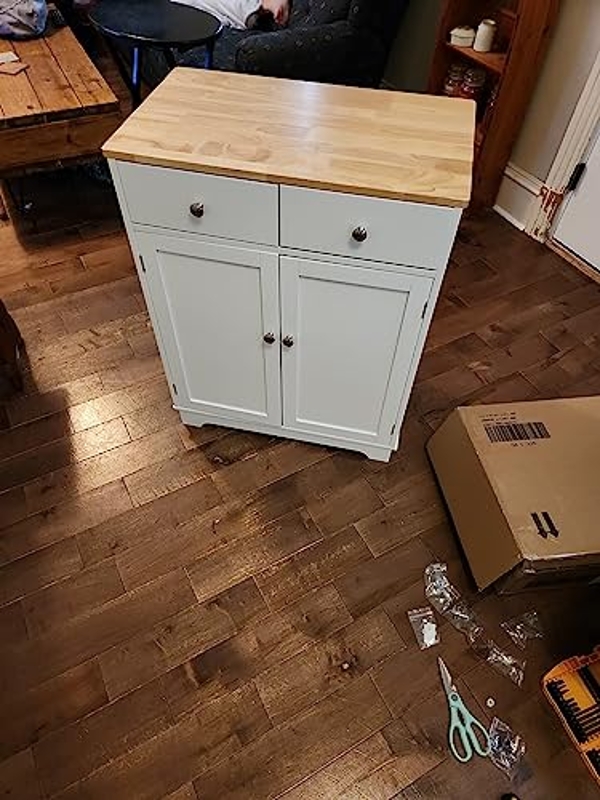 Made of easy clean rubber wood and MDF, this cabinet is perfect for any kitchen and other rooms! The two large drawers and one cabinet with shelf adjustable can provide you more possibility to store. Polished surfaces and table corners are very safe and friendly to kids. Don't hesitate to take it home, it was better than you could have even imagined!