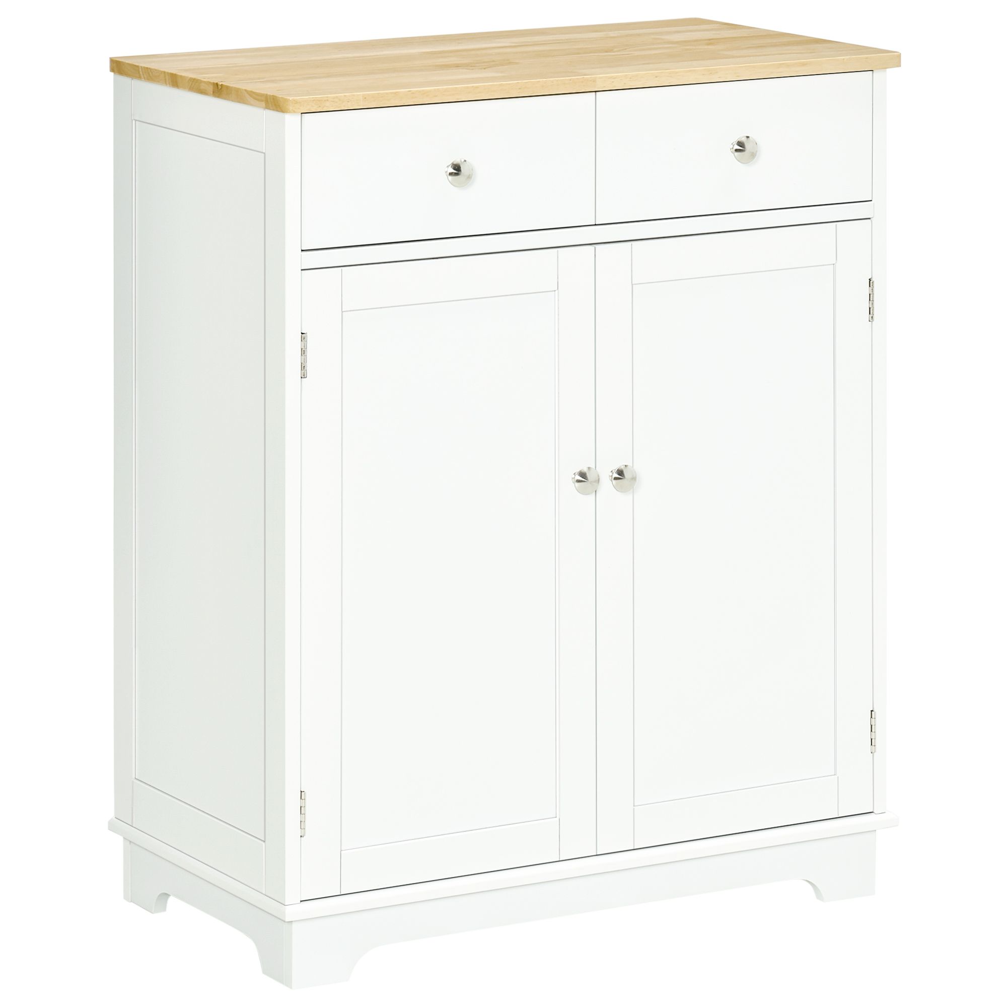 Kitchen Floor Cabinet Side Storage Cupboard Multi-use Sideboard Table with Solid Wood Top, Adjustable Shelf Drawer for Dining Living Room