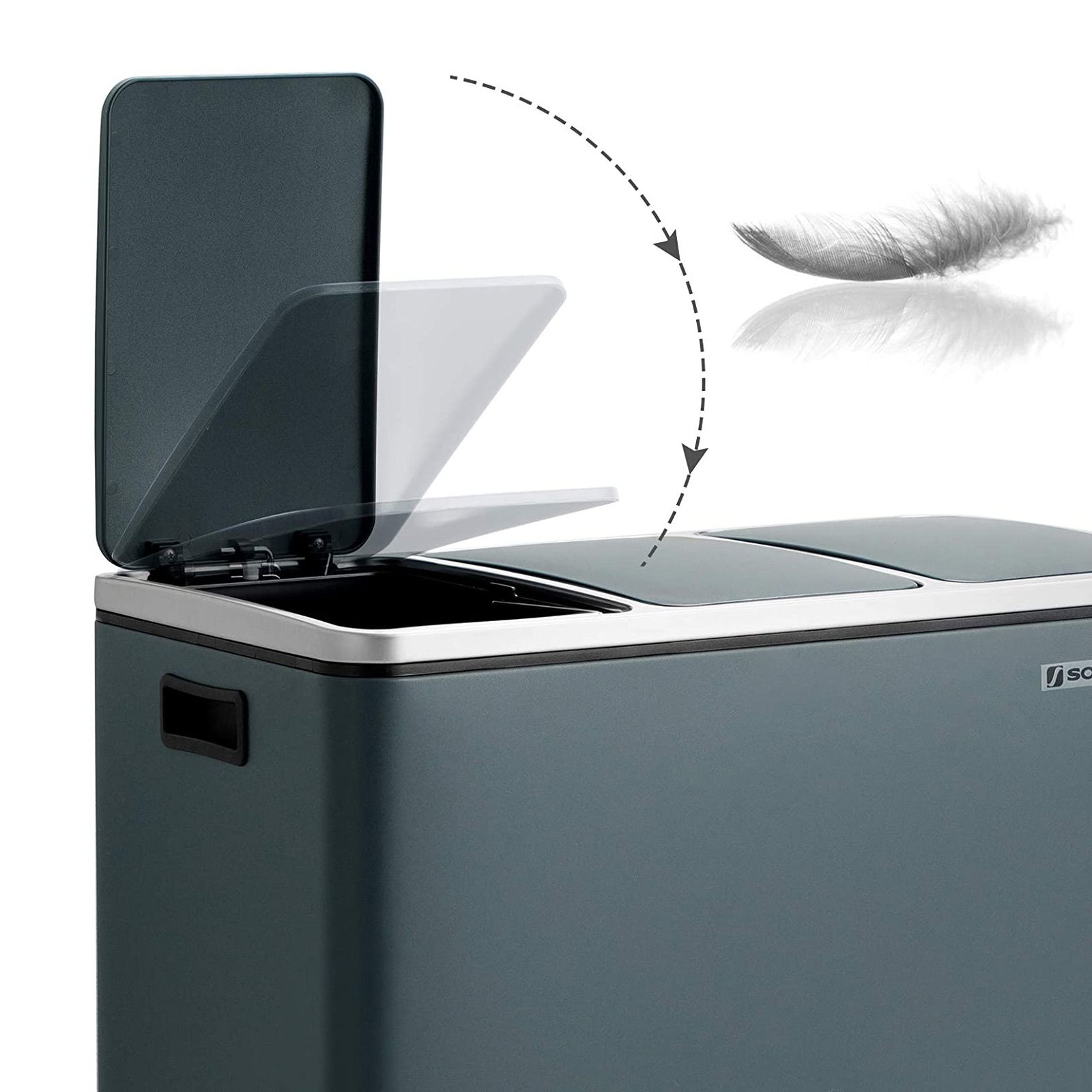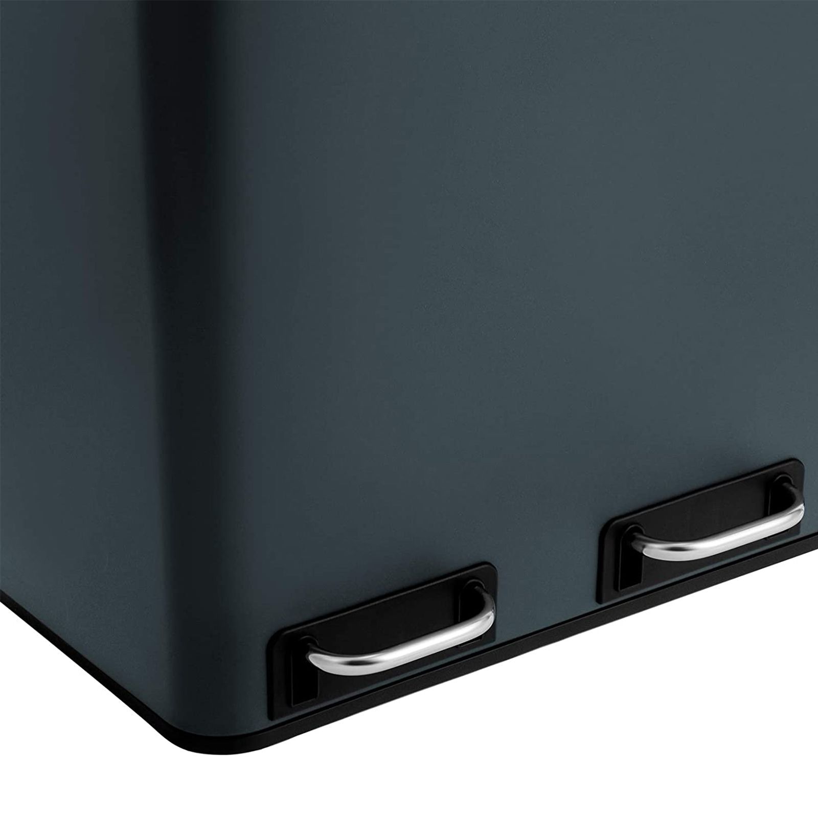 Recycling Can Be Easy: With 3 sections side by side, you can sort your recycling and trash with a simple toss. All you need to do is to step on the pedal to open the lid, and you now have your hands free to throw away your trash or recycling. Without needing to touch anything with your hands, it's more hygienic. The 3 buckets inside have handles so that they can be easily lifted out and emptied.Puppy- and Kid-Proof: If you get tired of cleaning up the mess that your naughty husky or kid leaves you after they overturn the garbage basket, then this sturdy bin with lids is perfect for you - it can't be opened without first using the pedal.