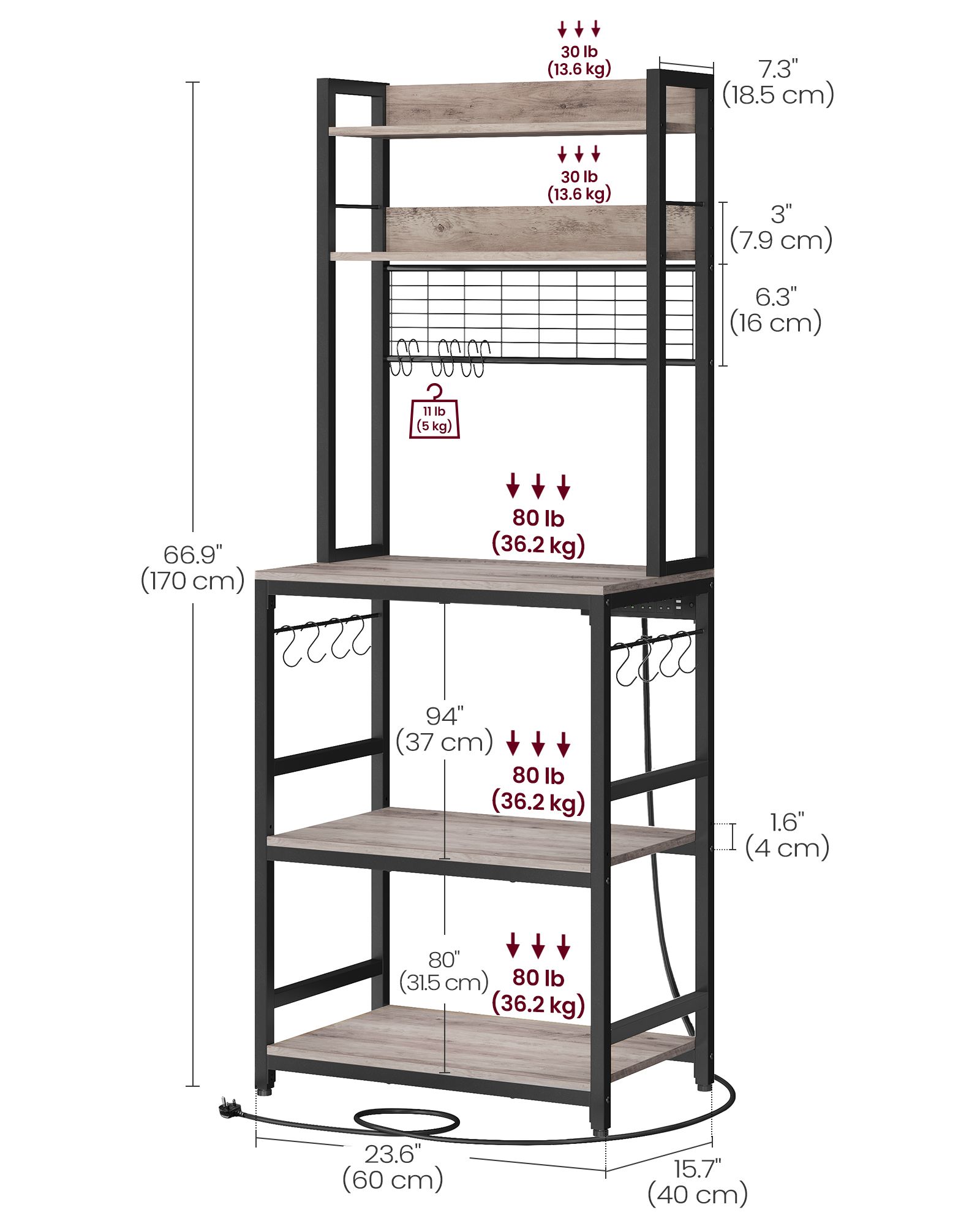Kitchen Storage Rack - SOLRA Power Outlet Shelf - Heather Greige