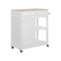 This country house trolley offers an elegant and practical storage solution for limited space in your kitchen or dining room. Use the top surface as a countertop or to display canapés or fruit bowls, while kitchen utensils can be stored away in the spacious drawer. Glasses and crockery can be kept neatly in the cabinet, while open shelves allow you to showcase more decorative items. Details: Color: White, Light Wood. Main material: MDF. Additional material: Rubberwood. Weight: 24 Assembly: Full Assembly Required Wood type: Hevea brasiliensis Wood Origin: Thailand Legs Height: 6