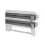 Made of high quality ABS material, durable and non-toxic.The holder has two dispensers for your foil, plastic wrap, or wax paper. Wall Mounted Design - with 4 screws and 4pcs of M3 plastic, according to personal preferences paste or nail on the wall directly.Everything is stored neatly in one placeBoth roll containers are equipped with razor-sharp blades, which cut the foil neatly and precisely.This rack holder is great for dispensing cling film, kitchen foil and kitchen roll. It's a one-stop shop for a well-organized kitchen.
