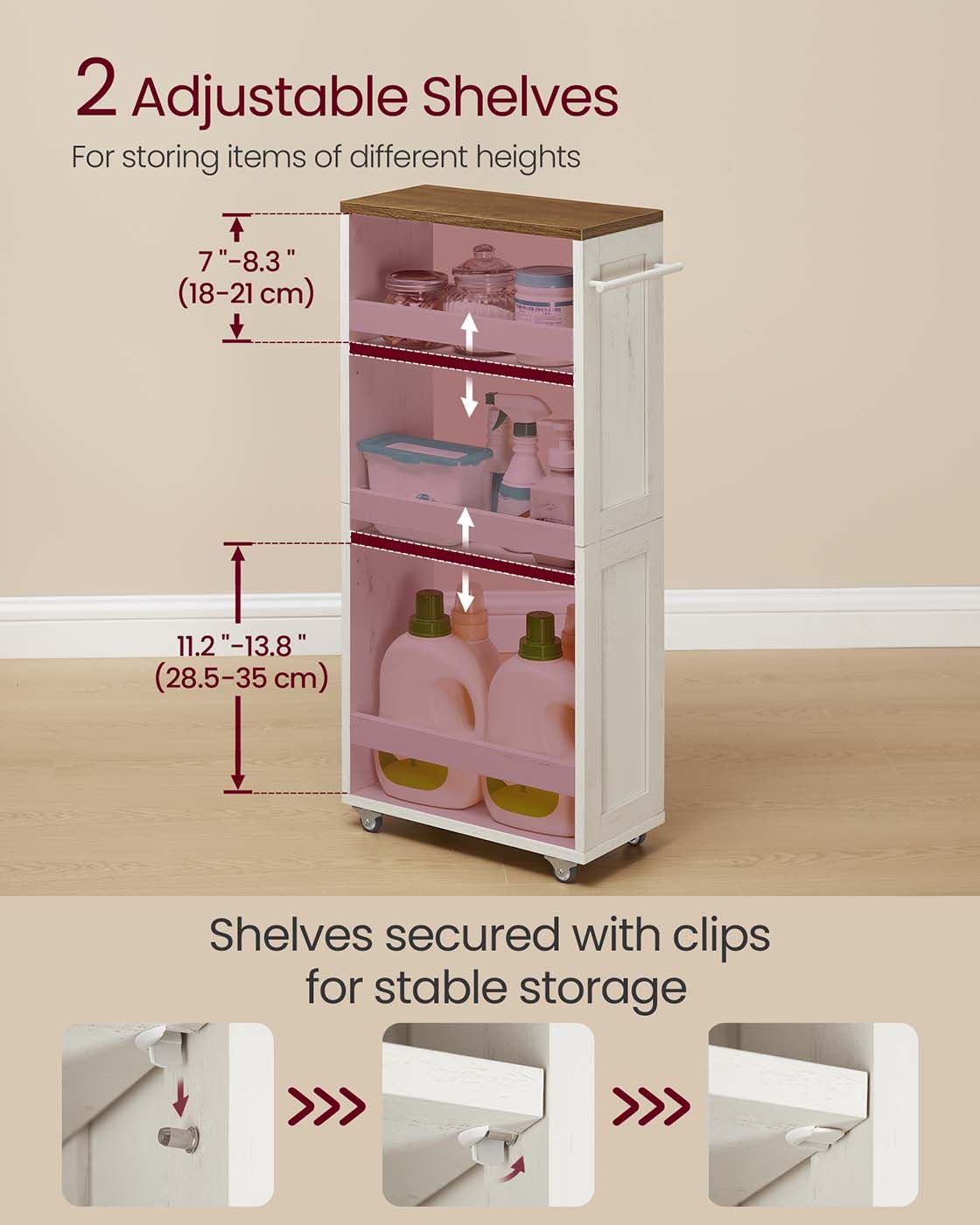 Kitchen Trolley - ORARAH Slim 4 Tier Rolling Storage Cart with Wheels - Rustic White