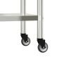 This kitchen work table is perfect for food prep and storage and is ideal for a kitchen bar, restaurant, school, as well as other commercial places. Durable and stable construction: The work table is made of stainless steel, providing resistance to corrosion and rust for years of reliable use. The smooth surface is easy to clean and maintain, ensuring a hygienic food preparation area.Ample workplace: The stainless steel prep table is designed with a bottom shelf and a 2-tier overshelf for customised storage space, providing ample storage space for your microwave oven, kitchen utensils, or any other tools you may need.Flexible movement: The prep table comes with 4 wheels, making it easy and convenient to roll it wherever you need it. Additionally, 2 wheels are lockable for added control and safety. Warning:To prevent it from tipping over, this product must be used with the provided wall attachment device.