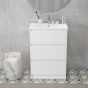 kleankin 600mm Bathroom Vanity Unit with Basin and Single Tap Hole, High Gloss White Floor Standing Bathroom Sink Unit with 2 Drawers