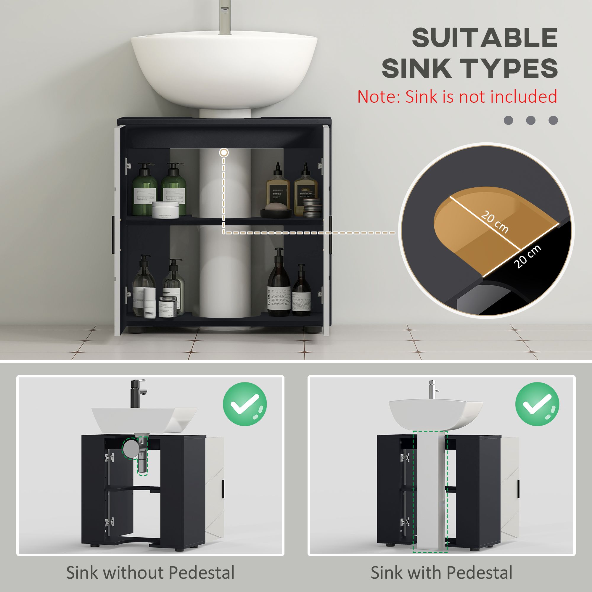 kleankin Pedestal Sink Cabinet, Bathroom Vanity Unit, Floor Basin Storage Cupboard with Double Doors and Shelf, 60 x 30 x 60 cm, Light Grey